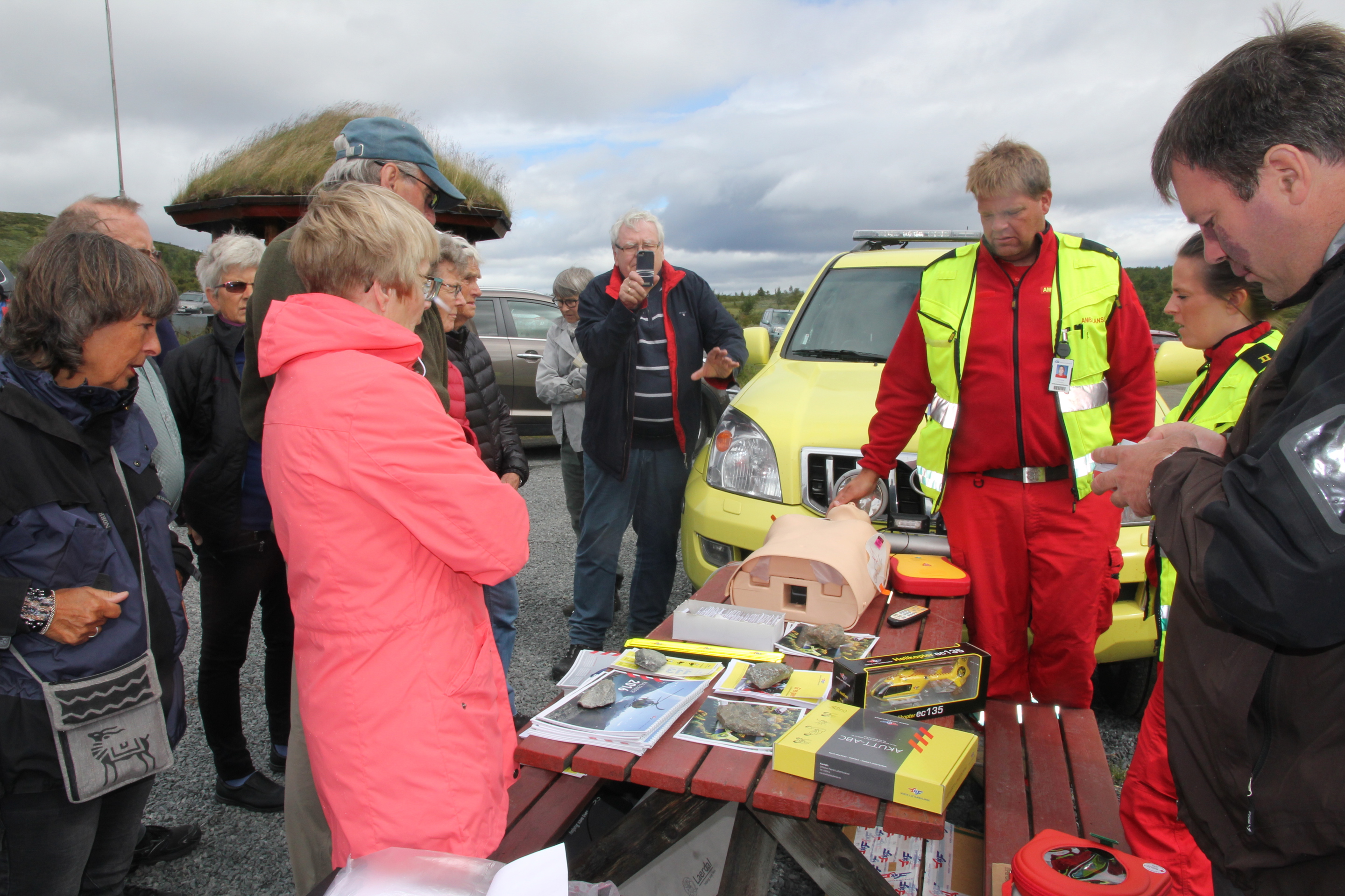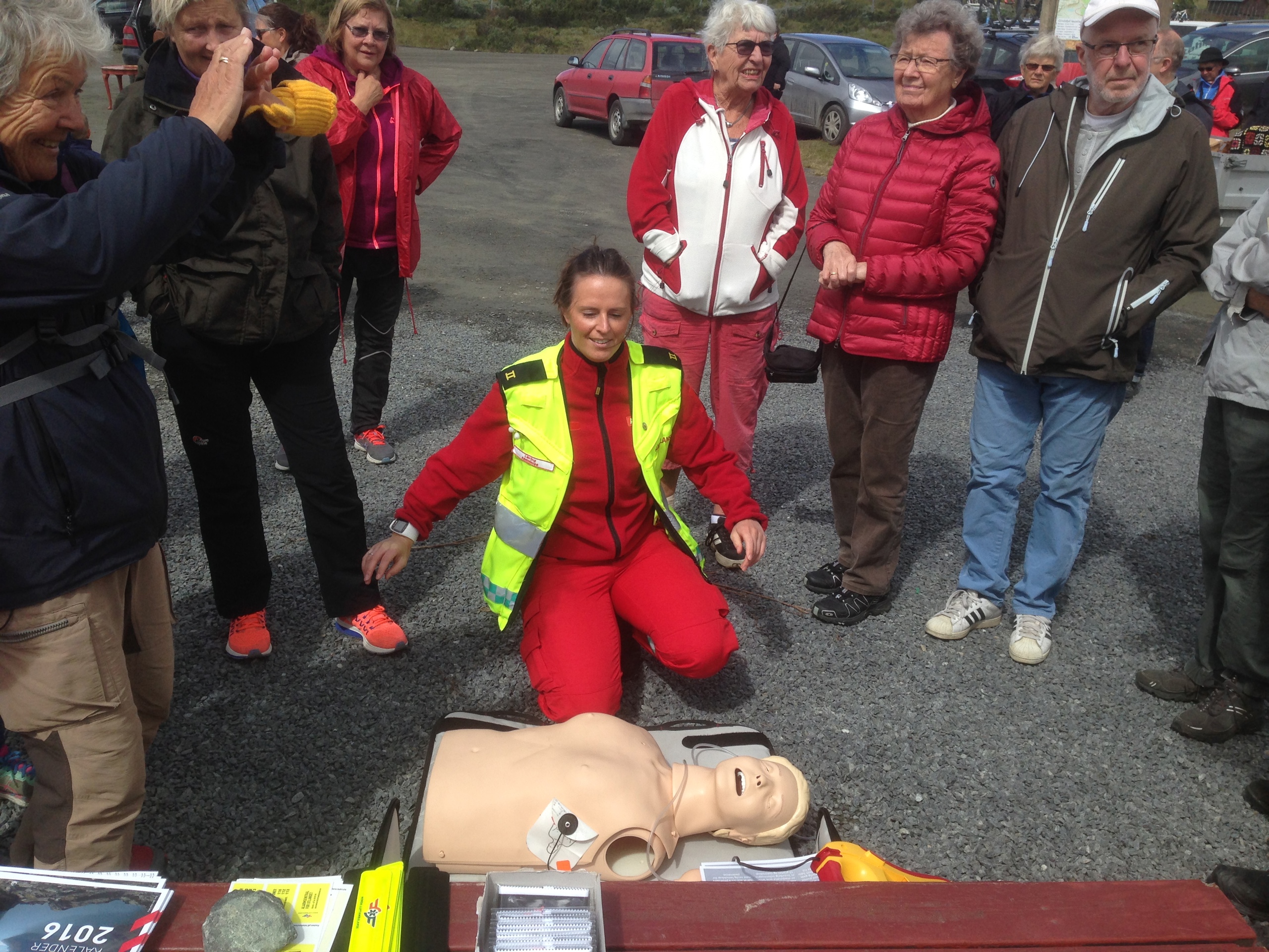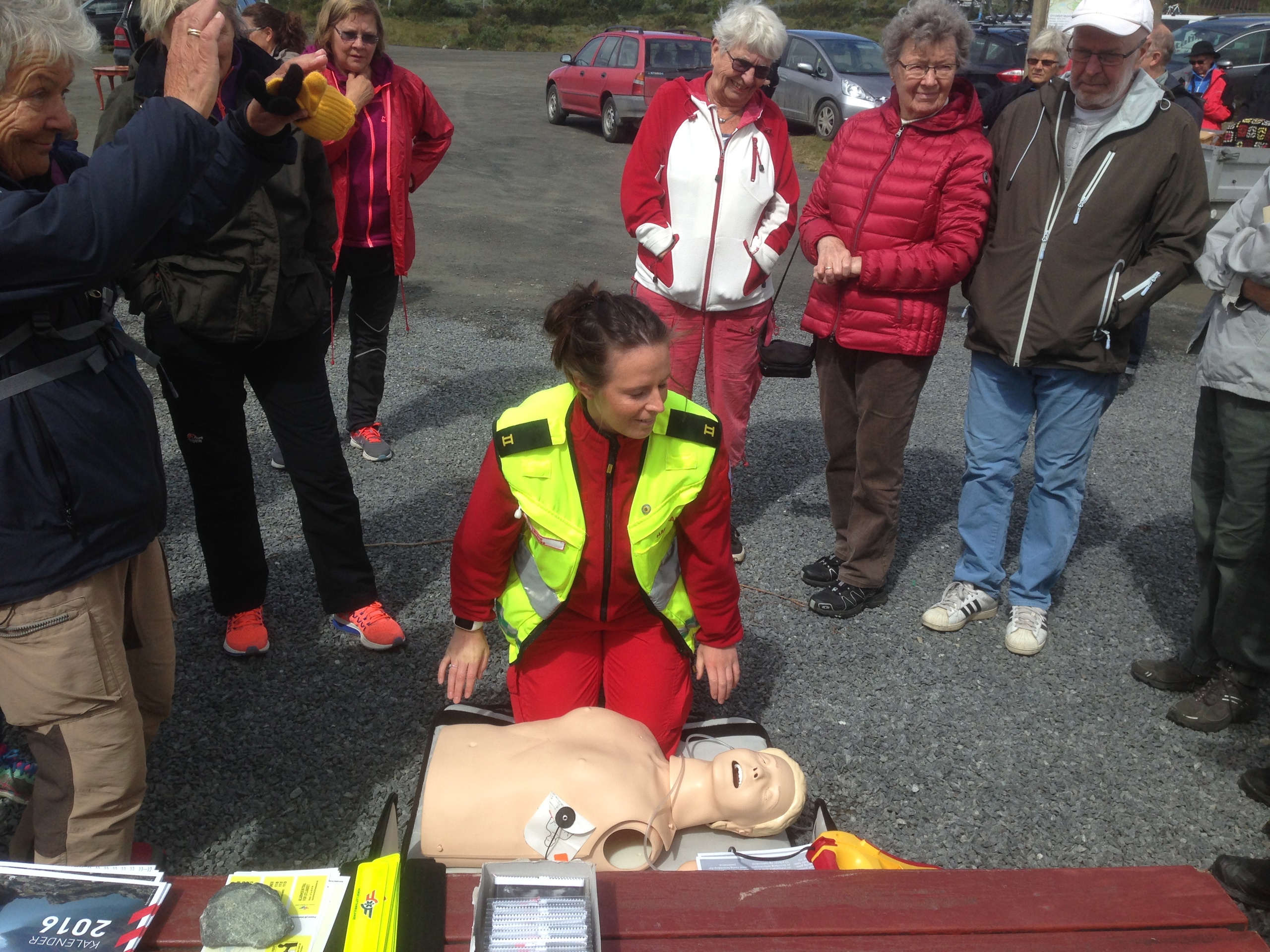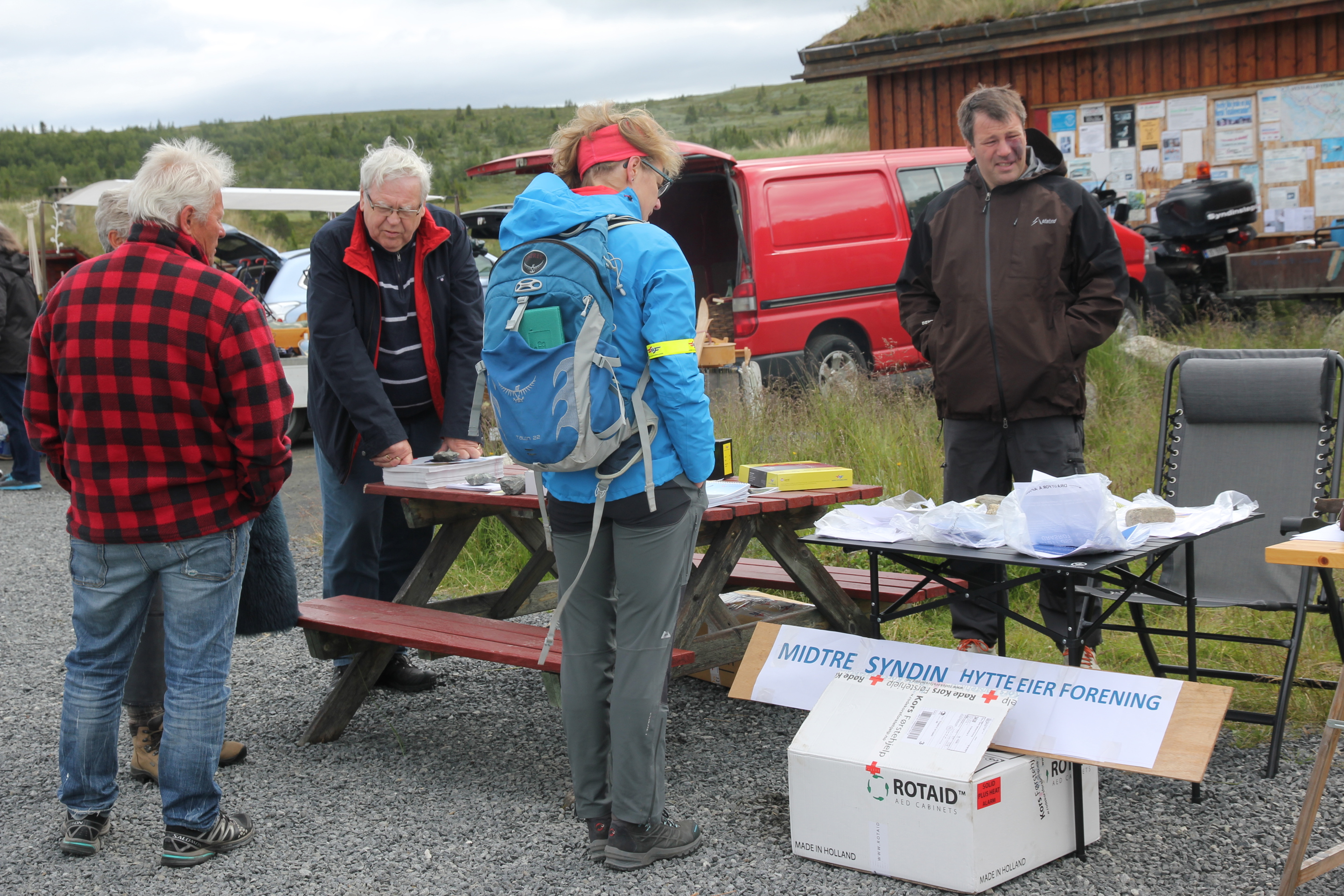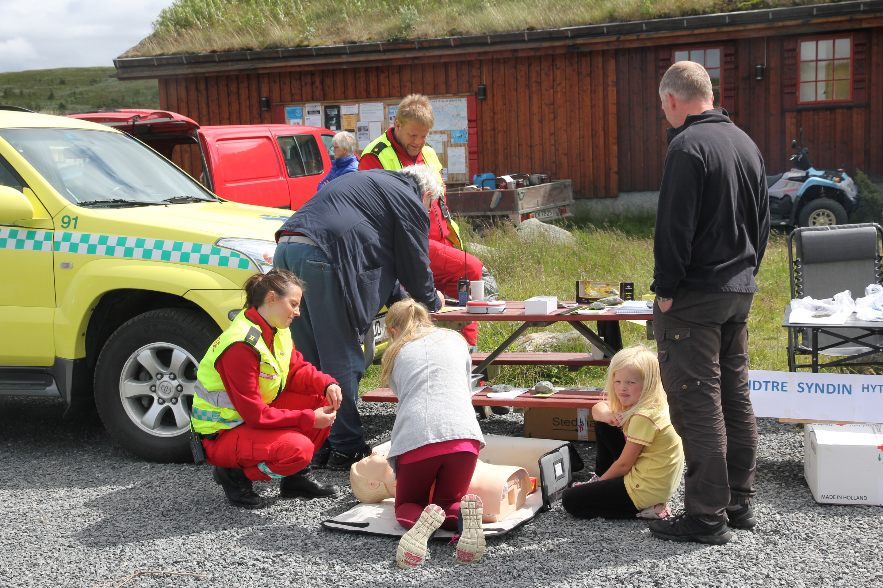 17. juli 2016 var det markedsdag på Syndinstøga Midtre Syndin Hytteeierforening hadde en stand med instruksjon i hjerte og lungeredning. Hjertestarteren ble plassert på Syndinstøga