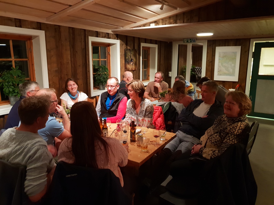 Etter dugnaden, da alt var ferdig ryddet, møttes dugnadsgjengen på Syndinstøga til et lystig lag ut i de små timer. Vi som deltok anbefaler varmt å delta på neste dugnad. Midtre Syndin Hytteeierforening retter en stor takk til alle som deltok. En spesiell takk til Mikael Fønhus som var sentral i planlegging og organisering av dugnaden.